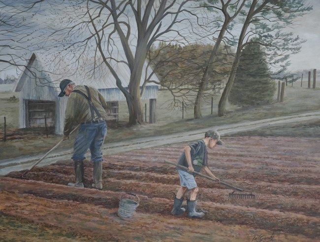 Hilling Potatoes 12x14 - egg tempera Private Collection