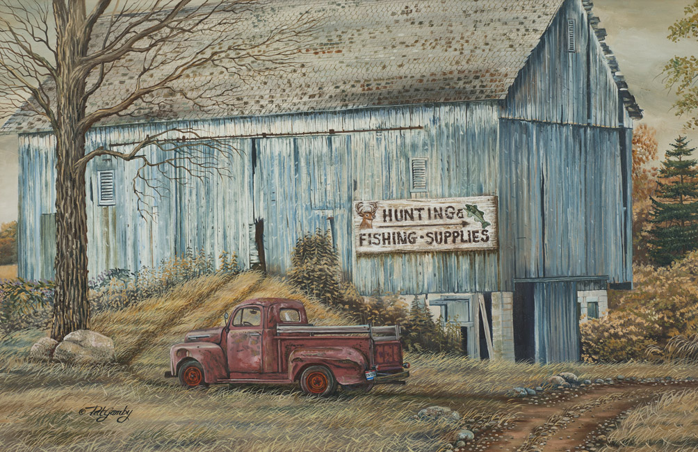 Hunting and Fishing Supplies 11x17 - egg tempera Private Collection