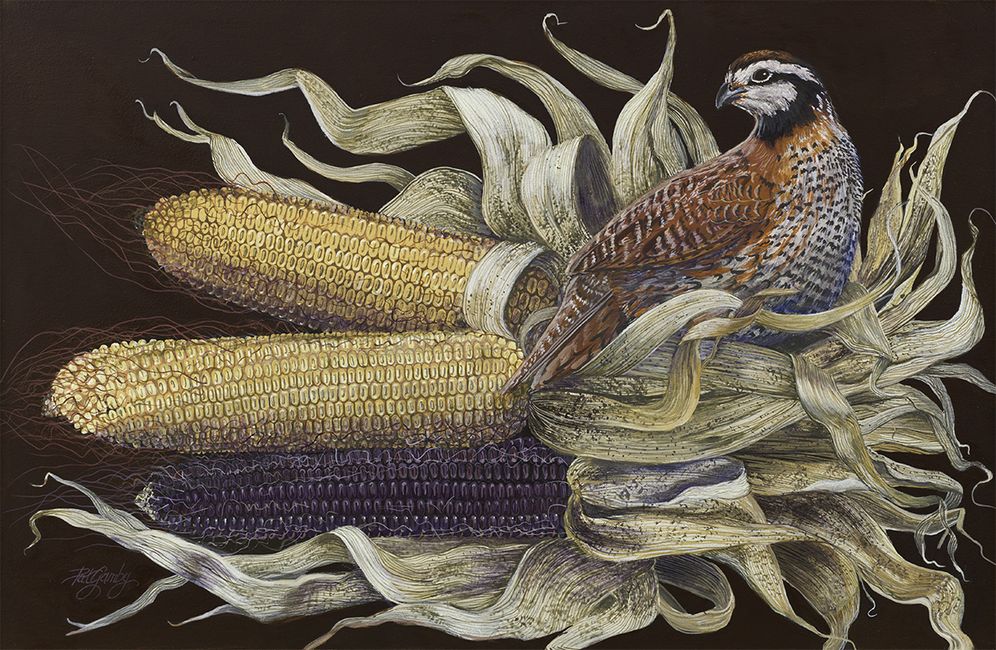 Quail and Fall Corn 11x17 - egg tempera $1000.